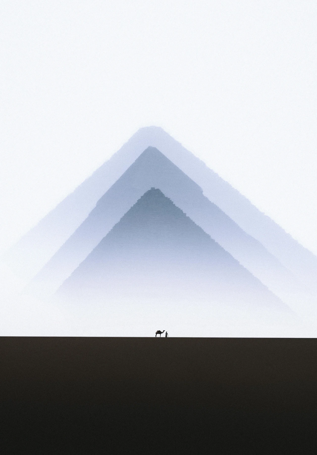 وفي لقطته التي توثق الأهرامات الثلاثة في الجيزة، تظهر أشهر معالم مصر وكأنها ترتفع من الأفق الضبابي القاتم، خلف مجموعة صغيرة من المسافرين على ظهر الإبل.