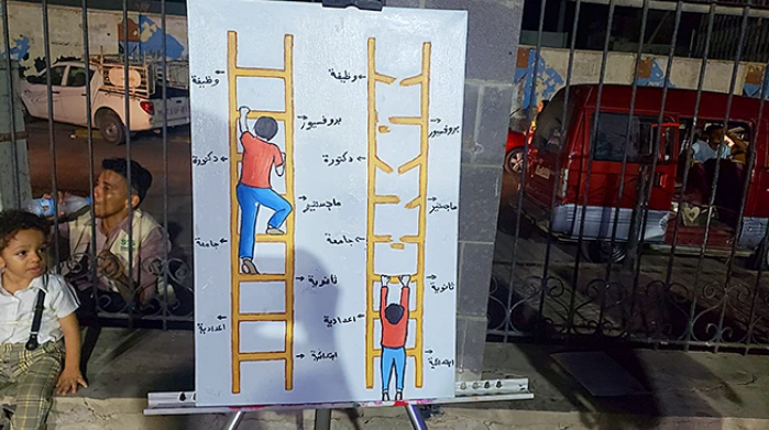شهدت منارة عدن التاريخية، مساء أمس الأربعاء، معرضًا مفتوحًا عرضت فيه لوحات فنية تشكيلية هادفة إلى إشراك ذوي الاحتياجات الخاصة في برامج التعليم العالي والتعليم الجامعي.