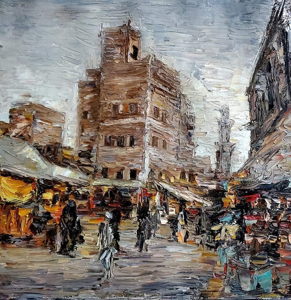 إن الفنان يغدق على السطوح غلالات لونية كثيفة ينجح معها في إحالة المعطيات المادية وجسامة الطبيعة والكائنات إلى وقائع جمالية يتسق فيها التوازن الوظيفي المنطقي للأشياء مع التوازن الفني الجمالي والدلالي , فكثير ماتفصح التكوينات الحافلة بدينامية وفوران الألوان عن قصدية المصور في إستبار طاقات جديدة للبناءات البصرية المرسومة ضمن شروط التقاليد المدرسية , وبدلا من إسقاط قيم المشابهة واعتماد بنى حداثية في إنشاء اللوحة حافظ المصور على ظاهرية العالم من خلال المعاينة الخارجية ومراعاة النسب , لكنه اتخذ من الحلول اللونية أداة فاعلة في تأكيد الحضور الداخلي للحياة على سطح لوحاته , يتبدى ذلك في صباغة مشهدية المدن بألوان بنفسجية حالمة أو حمراء نارية أو زرقاء عميقة , هذا النسيج اللوني المتبدل في سياقات الأعمال يخلصها من دلالاتها الأولى ومن العادي والمألوف وينقلها إلى حياة أخرى تحايث الواقع بصورة ما غير أنها لاتتوقف عن التجدد والإيحاء بالحركة الخفية للعالم الحسي وبالقيم الوجدانية التي تفيض بها .