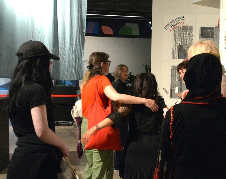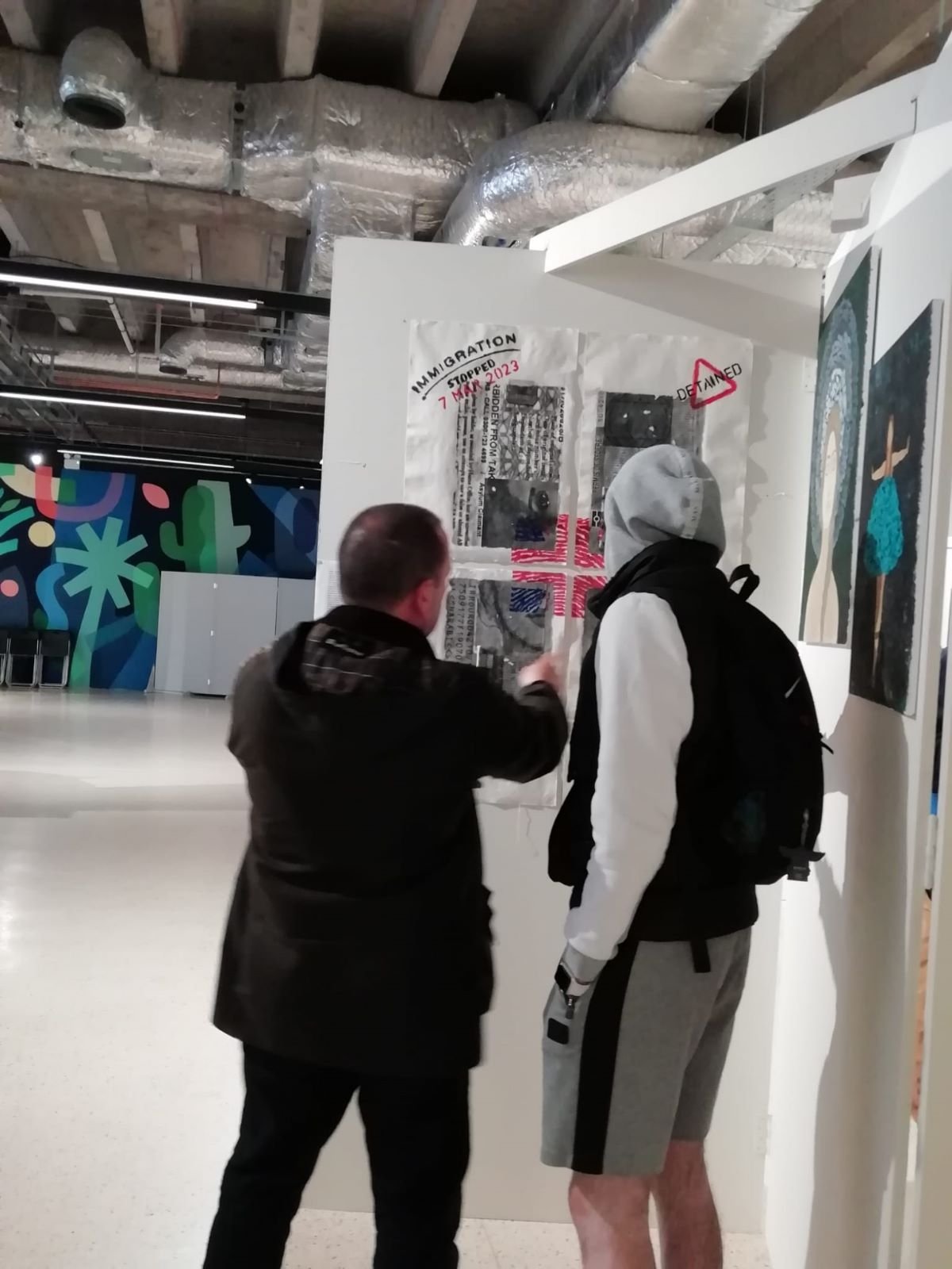 وتميزت مشاركتها بعملها الفني المؤلف من 4 لوحات بتقنيات فنية مختلفة حملت انتقاداً قوانين نظام الهجرة الجديد “الجائر” في بريطانيا خاصة بعد خروجها من الاتحاد الأوروبي التي اعتبرتها الفنانة صارمة بشروطها المشددة والتعجيزية.