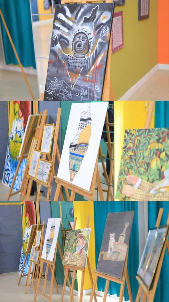 ومن خلال الألوان والأفكار عبر الفنانون عن رفضهم للحرب التي تستهدف الإنسان الفلسطيني وتدمر مقومات حياته ووجوده.