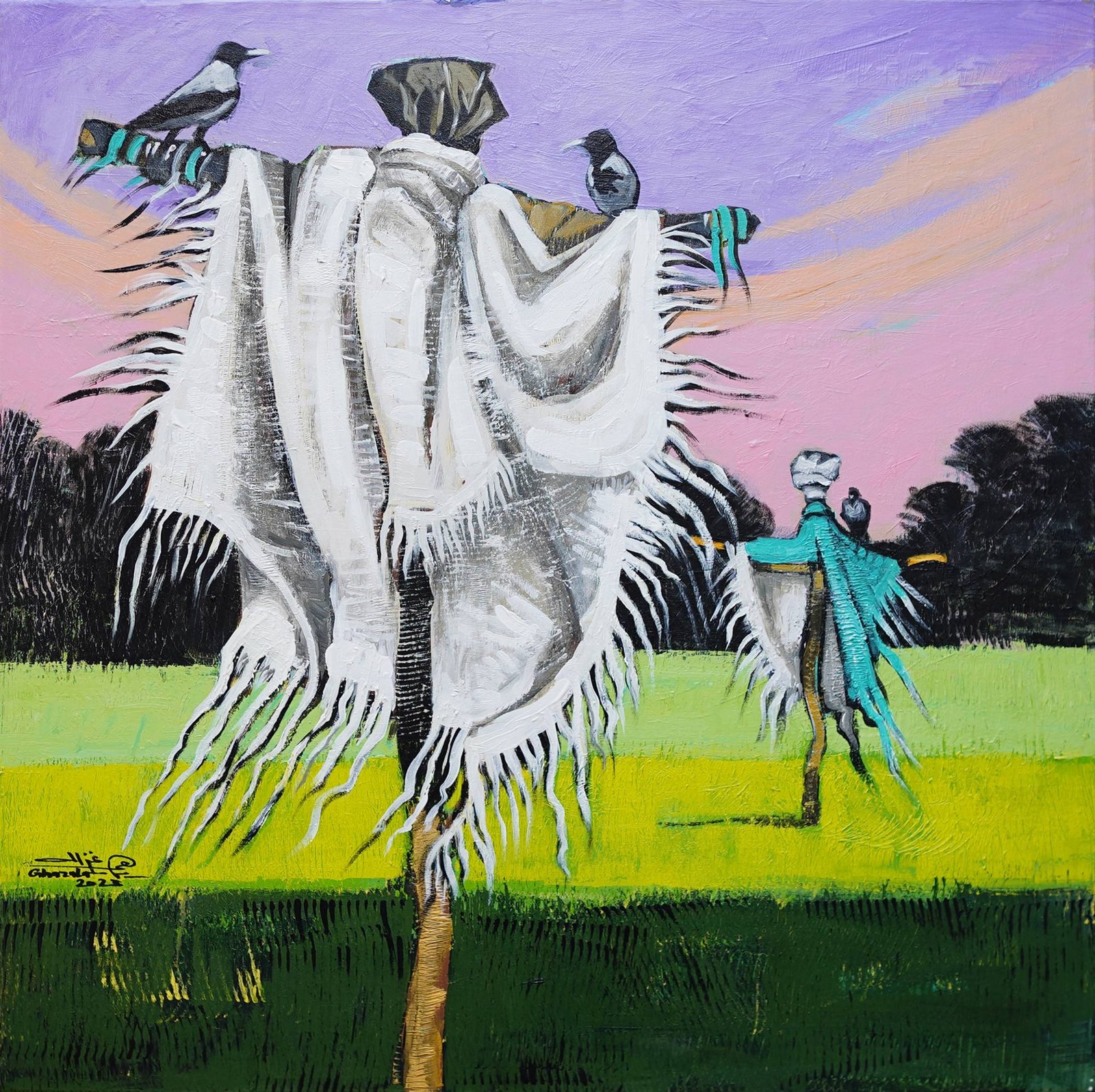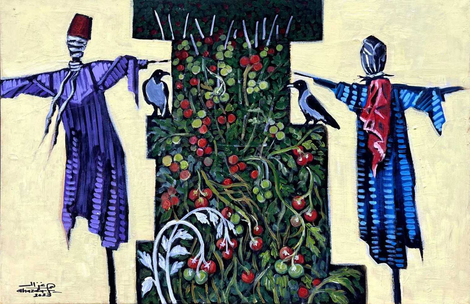 تُلهم الطبيعة المبدعين، وتوقظ ذاكرتهم ومخزونهم البصري والوجداني، وفي معرض الفنان المصري إبراهيم غزالة المقام بغاليري «بيكاسو أست» بعنوان (خيال مآتة) تبرز هذه العلاقة القديمة المستمرة ما بين ثلاثية الذاكرة والطبيعة والفن، عبر 25 لوحة زيتية وإكريلك تتأمل خيالات وجماليات الحقول في ريف مصر.