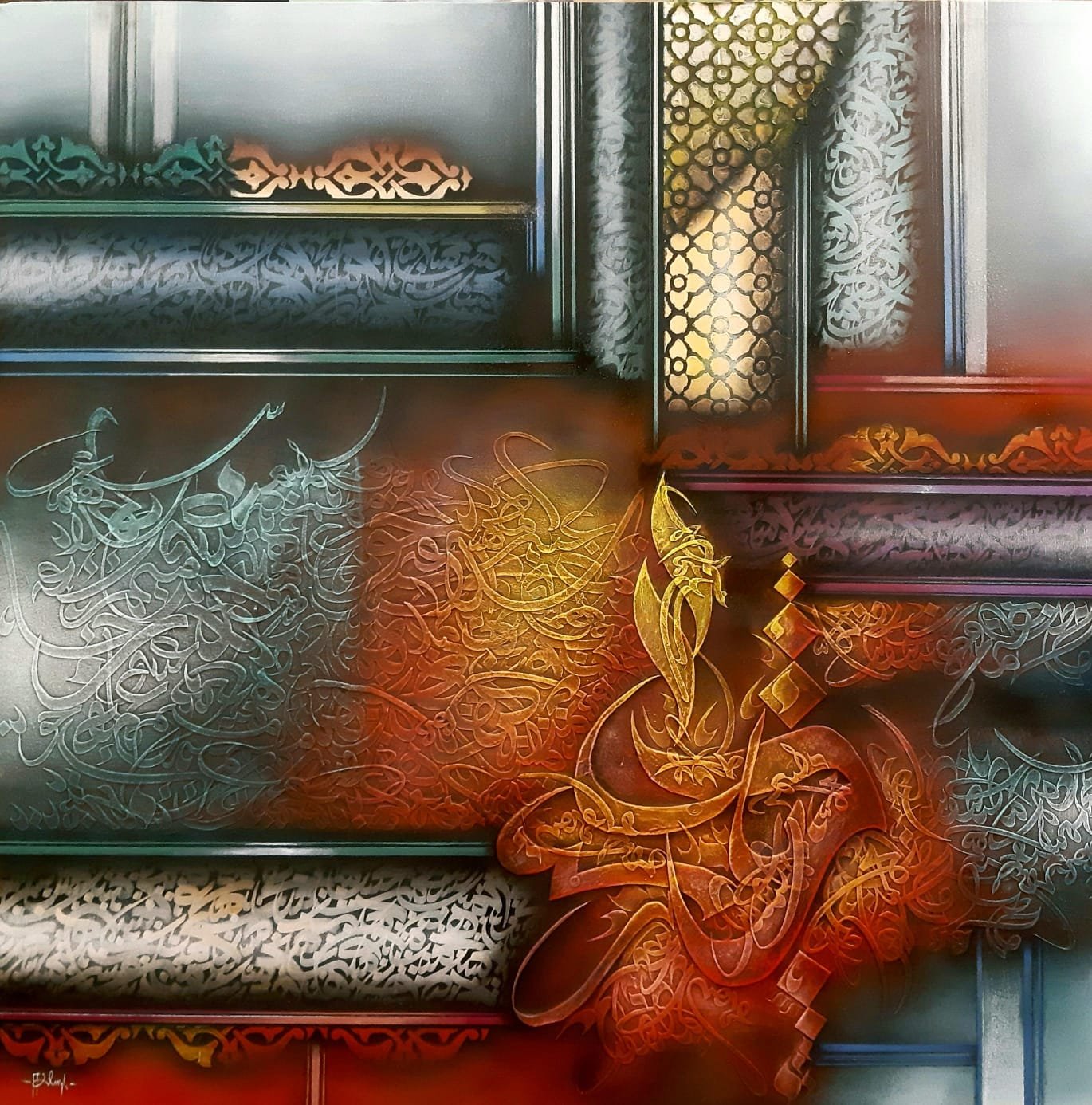 فصاحبها غير مشغول بمجاوزة الأنساق السائدة، قدر إنشغاله بتوظيف فنون الخط داخل عالمه الإبداعي المشفوع بالعاطفة الجياشة والحركة الصاخبة عندها ننسى نمطية الكتابة ونستغرق في بلاغة اللون .