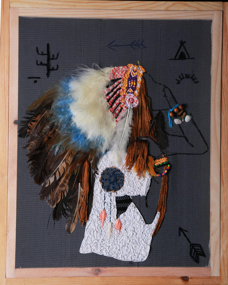 ويعد فن التطريز أحد الفنون العريقة في تاريخ الحضارات السابقة، ومن الفنون التي ما زالت موجودة إلى يومنا هذا بأشكاله وأنواعه المختلفة، وبأدواته المعروفة المتمثلة بقطعة القماش، وإبرة التطريز، وطوق التطريز لشد قطعة القماش المخصصة للتطريز. استخدمت إنتصار كل هذه الأدوات، ولكنها استطاعت خلق نتيجة مبتكرة لها رسالة عظيمة؛ تتحدث إنتصار لـ”خيوط” قائلةً: “تعمدت أن أقوم بعمل اللوحات بدون إظهار معالم الوجه، بحيث تكون الحضارة وتفاصيلها كافية لجعل المشاهد قادرًا على تخيل معالم وجوه الأشخاص وجنسياتهم”.